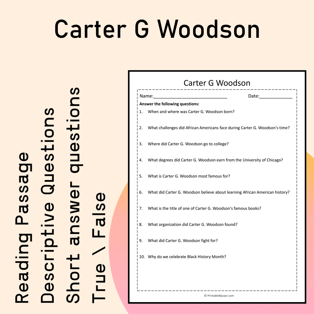 - Engaging Reading Passage: A captivating overview of Carter G. Woodson's life and achievements.