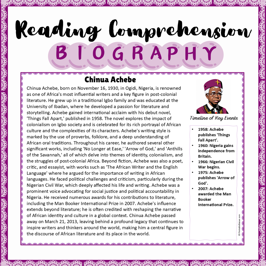 Chinua Achebe | Biography Reading Comprehension and Questions Worksheet