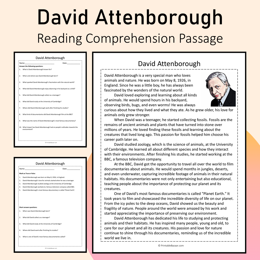 David Attenborough | Reading Comprehension Passage Printable Activity