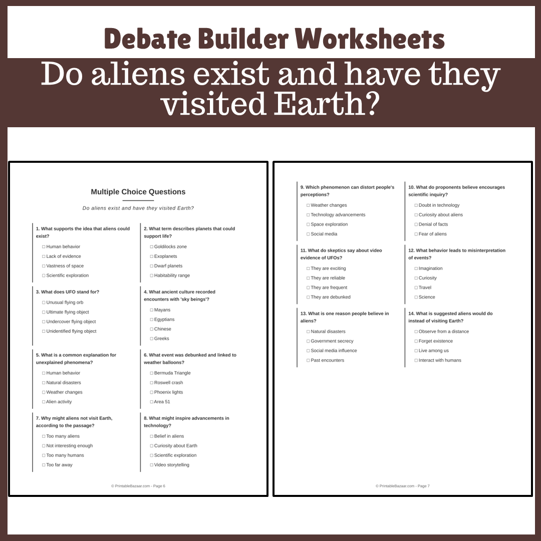 Do aliens exist and have they visited Earth? | Favour and Against Worksheet Printable Activity