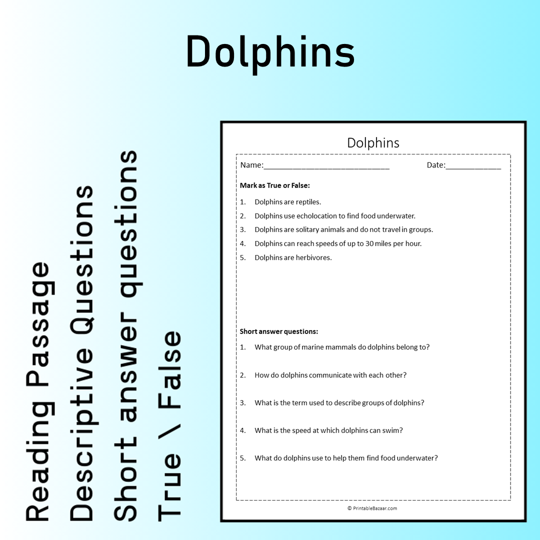 - Reading Passage: An informative text about dolphins and their habitat. 🌊
