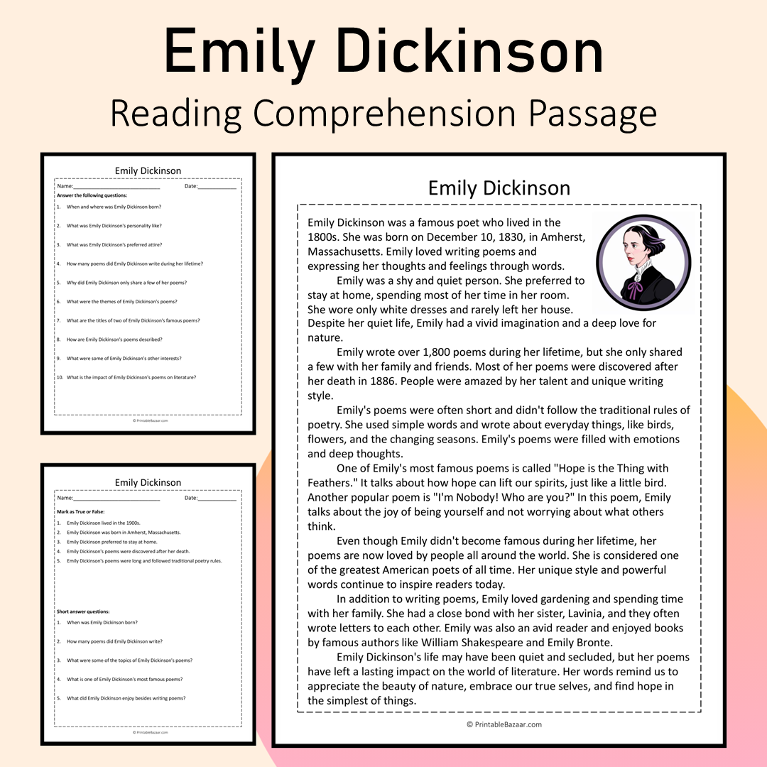 - Informative Reading Passage: A captivating overview of Emily Dickinson's life and her poetic contributions.