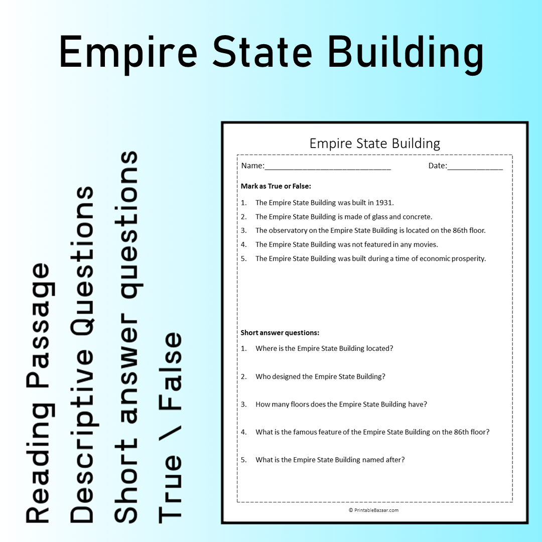 Empire State Building | Reading Comprehension Passage Printable Worksheet