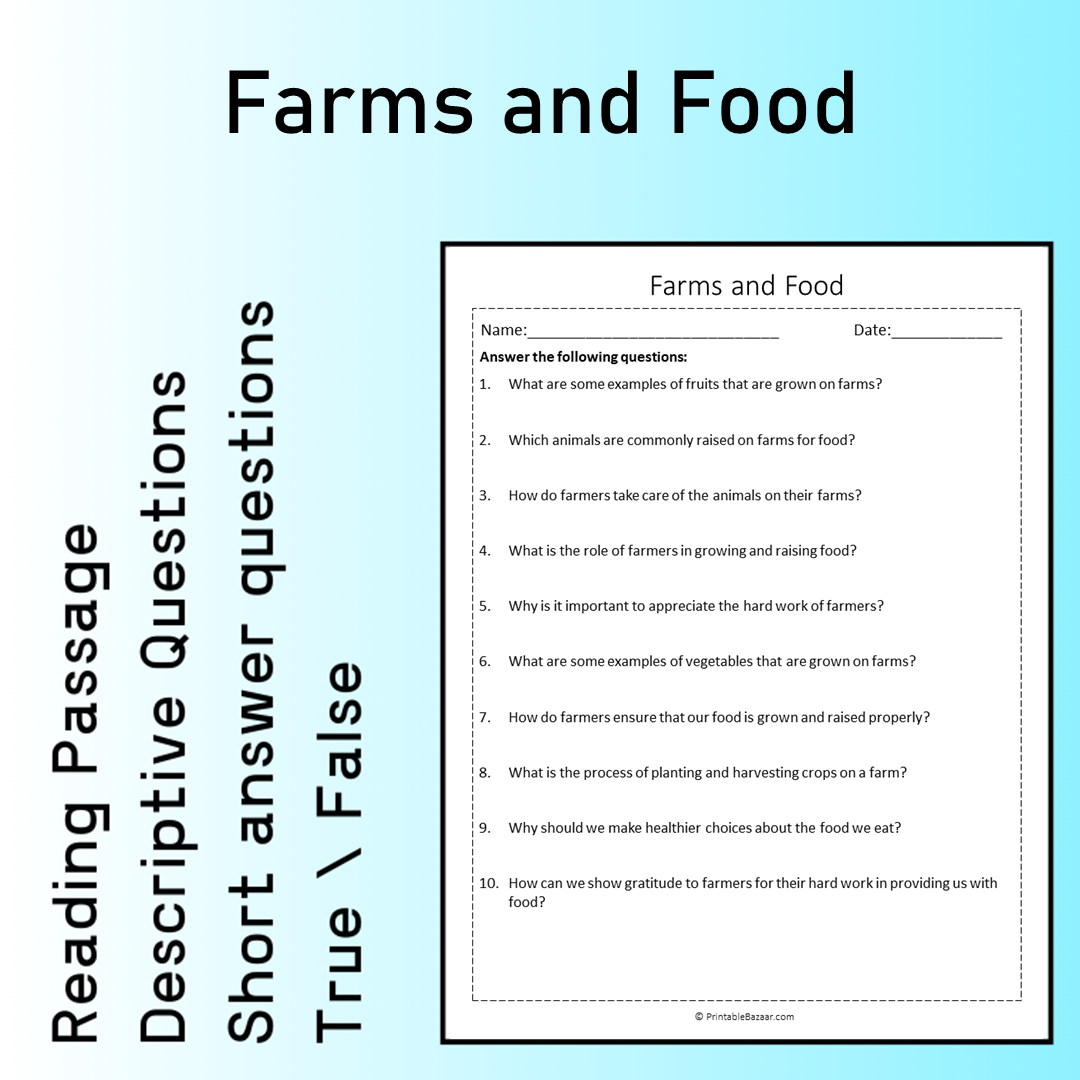 Farms and Food | Reading Comprehension Passage Printable Worksheet