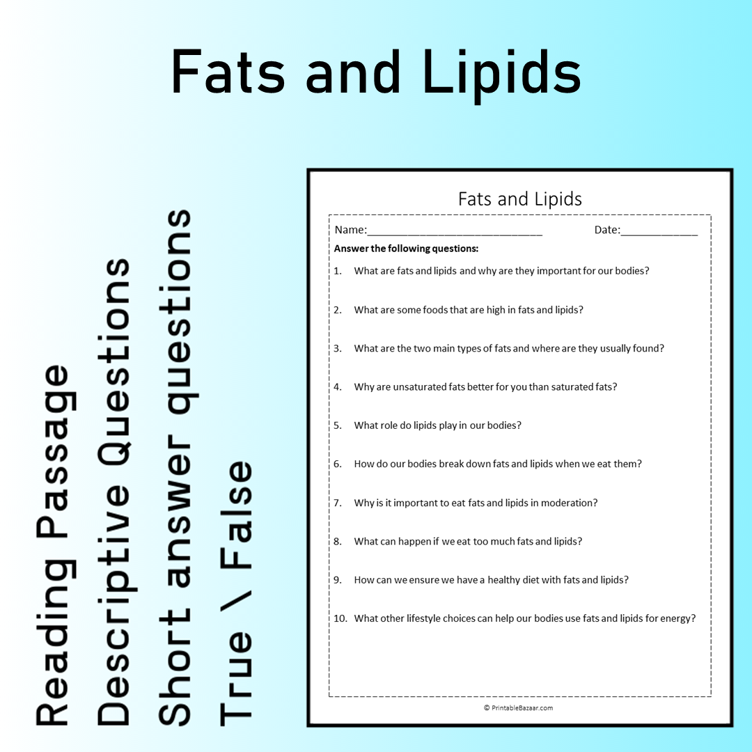 - Reading Passage: An informative text about fats, lipids, and their role in our health.