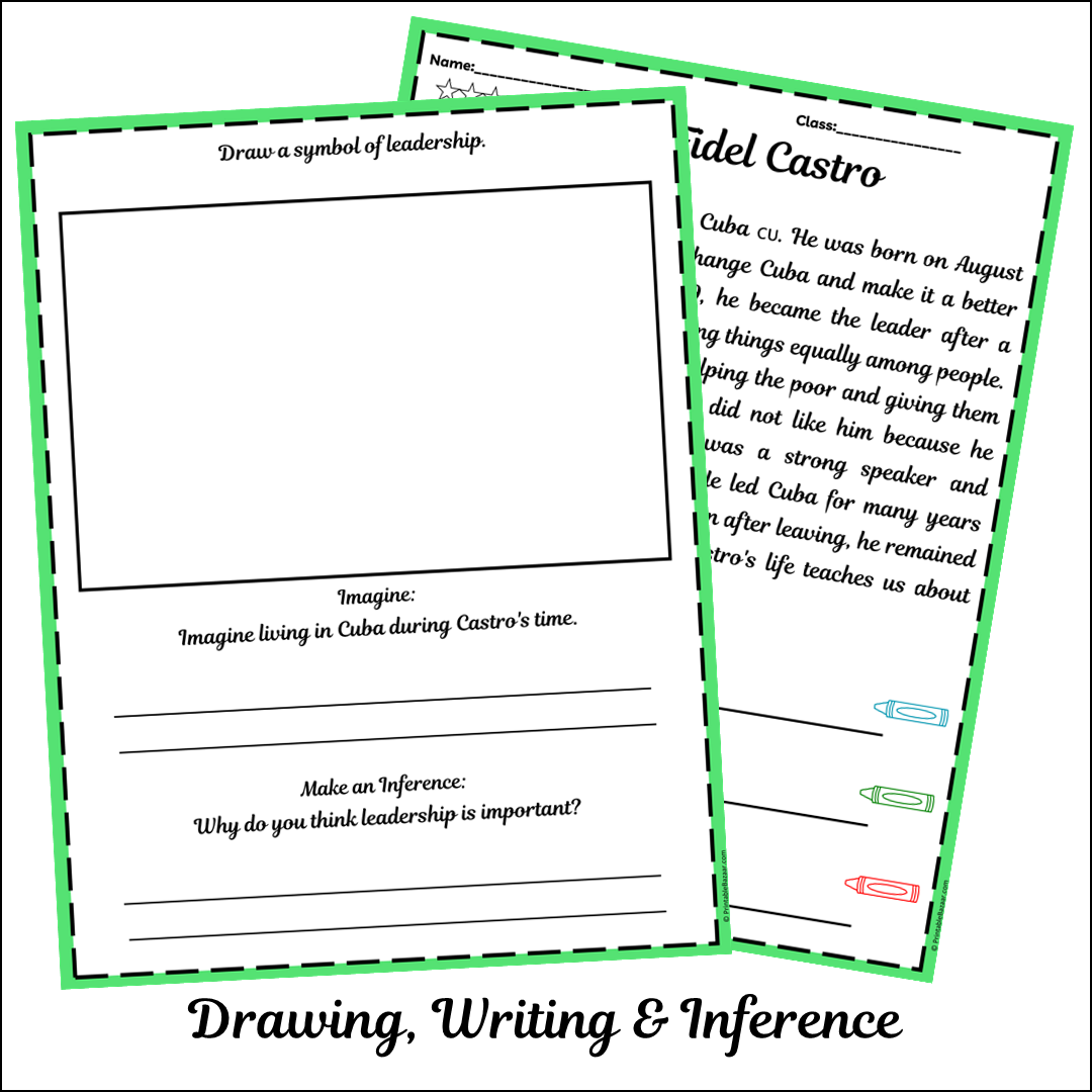 This worksheet not only provides an engaging passage about Fidel Castro, including his birth date of August 13, 1926, and his rise to power after the revolution in 1959, but it also encourages students to think critically. Sample questions like "When was Fidel Castro born?" and "What country did Castro lead?" prompt learners to explore the historical context of his leadership. Additionally, reflective prompts such as "Why do you think leadership is important?" allow students to connect personally with the content.