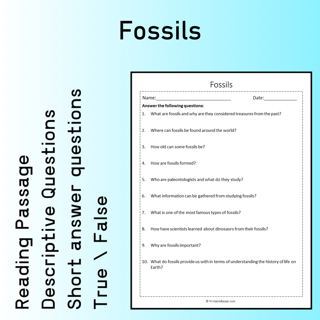 - Reading Passage: An informative text about fossils and their significance in understanding ancient life.