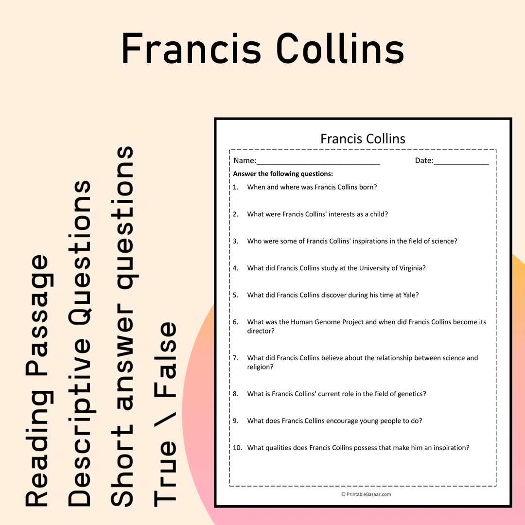 Francis Collins | Reading Comprehension Passage Printable Activity