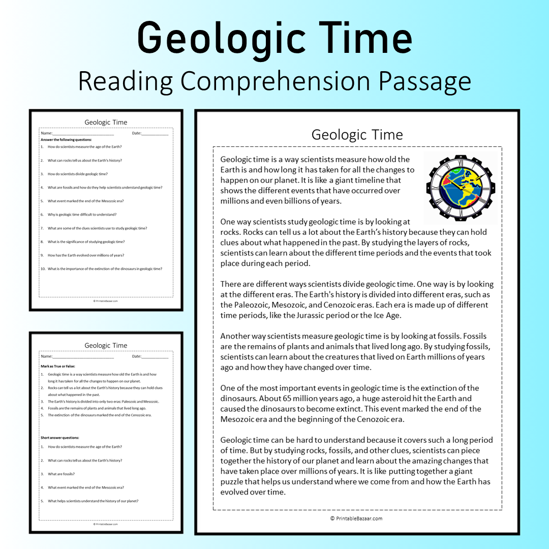 Geologic Time | Reading Comprehension Passage Printable Worksheet