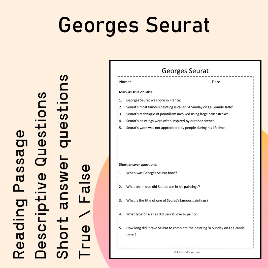 - Engaging Reading Passage: A detailed overview of Georges Seurat's life and artistic style 📚