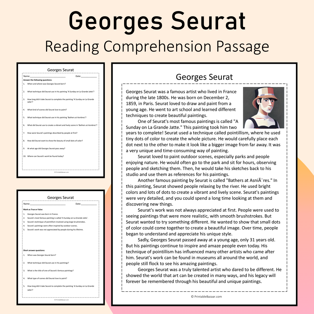 Georges Seurat | Reading Comprehension Passage Printable Activity
