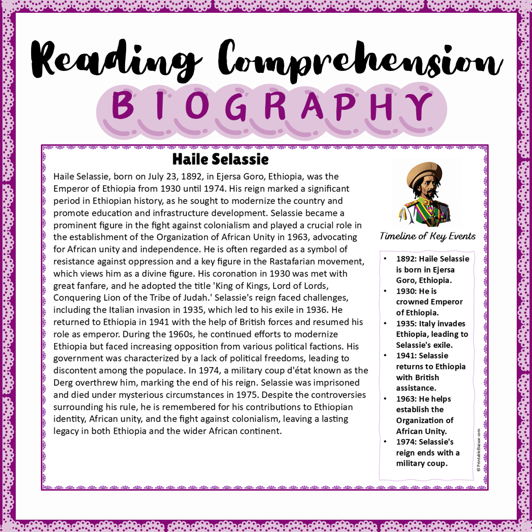 Haile Selassie | Biography Reading Comprehension and Questions Worksheet