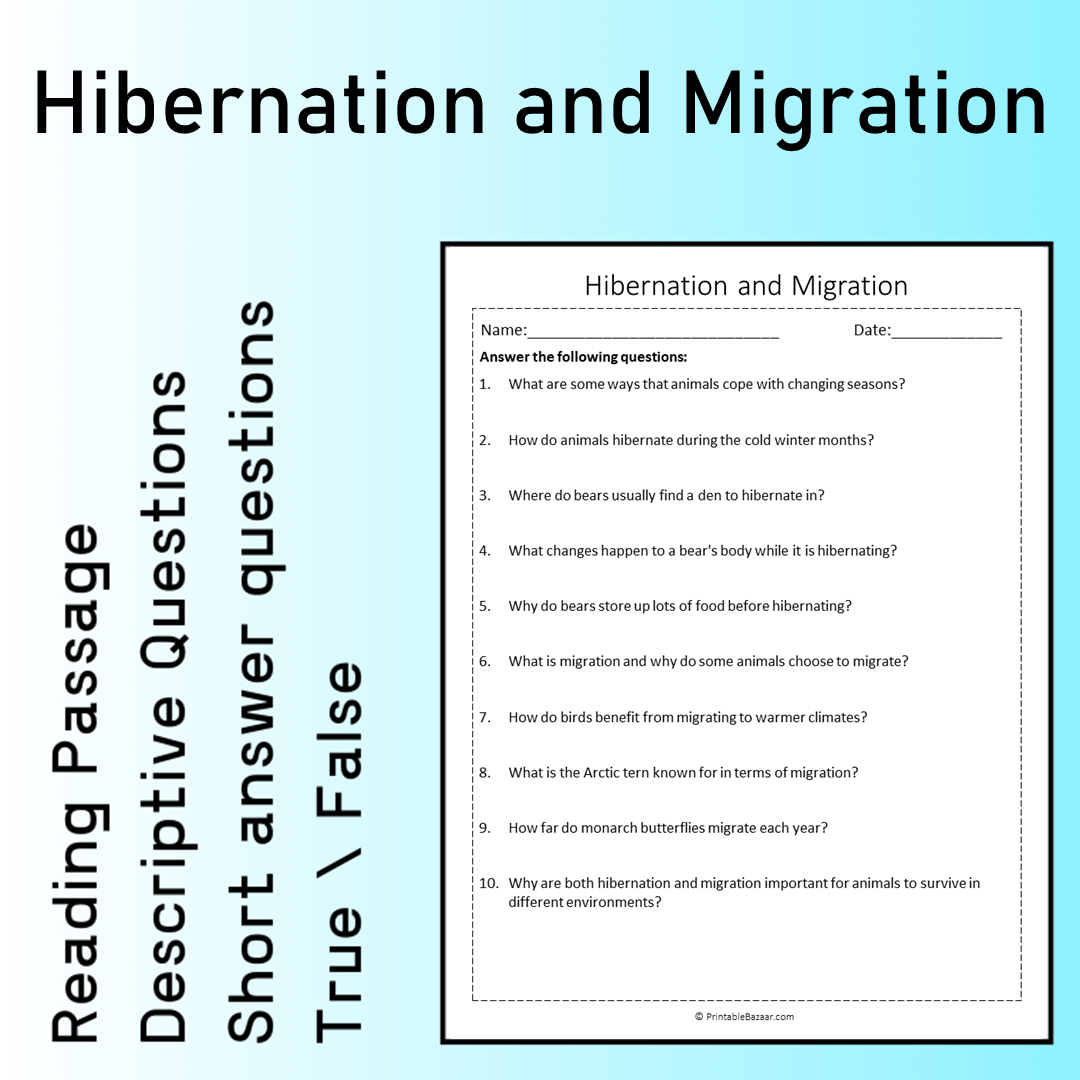 Hibernation and Migration | Reading Comprehension Passage Printable Worksheet