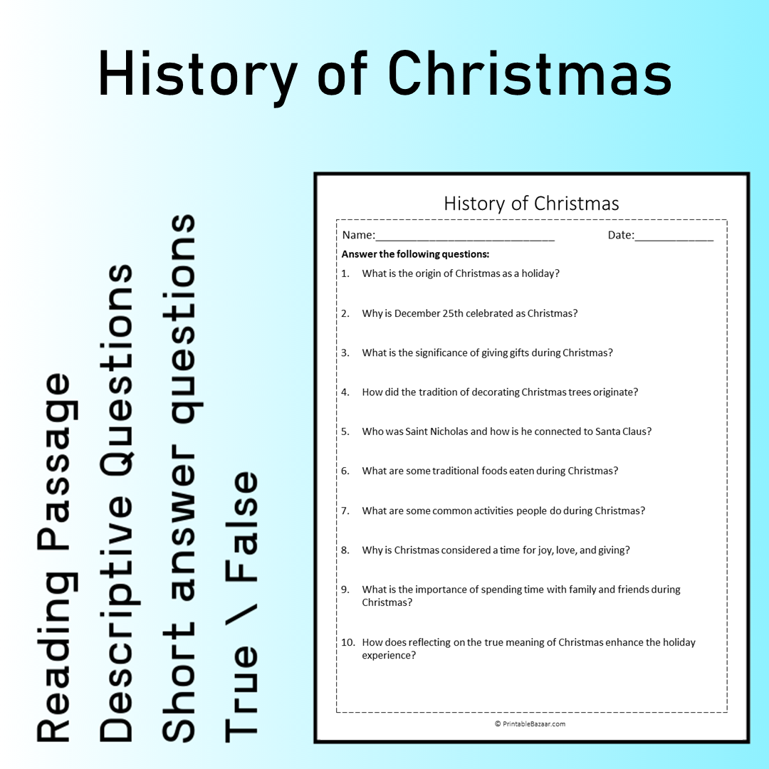 History of Christmas | Reading Comprehension Passage Printable Worksheet