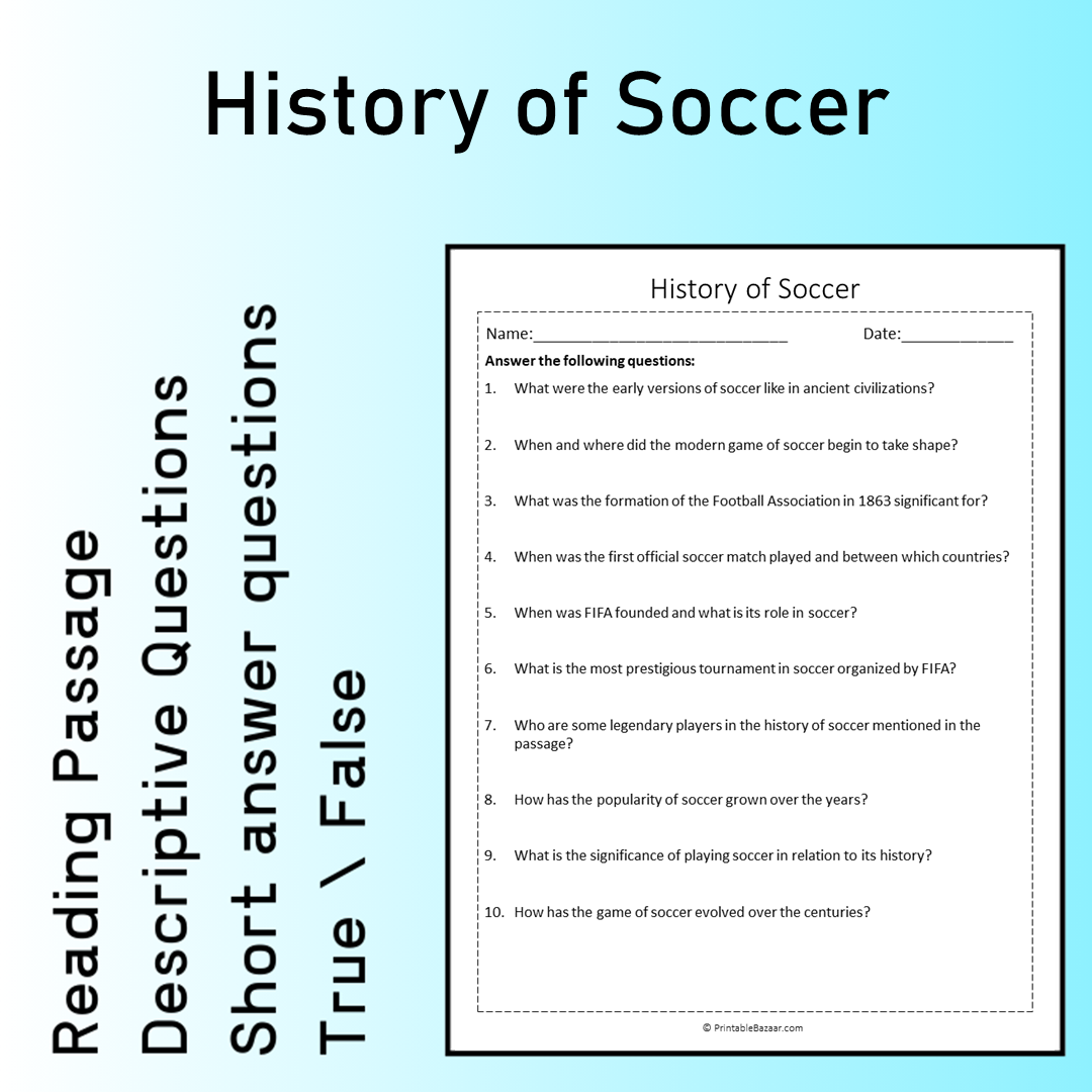 History of Soccer | Reading Comprehension Passage Printable Worksheet