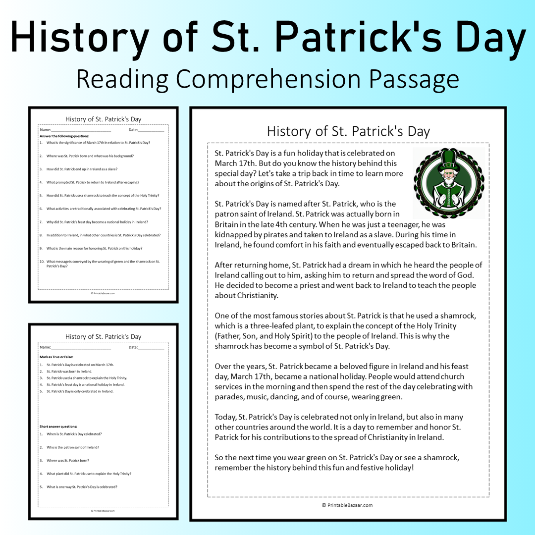- Engaging Reading Passage: An informative narrative on the history of St. Patrick's Day. 📖