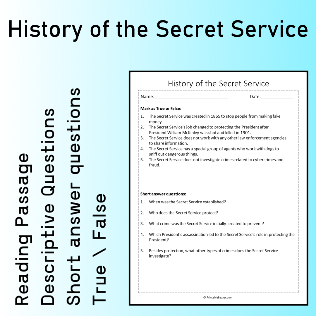 History of the Secret Service | Reading Comprehension Passage Printable Worksheet