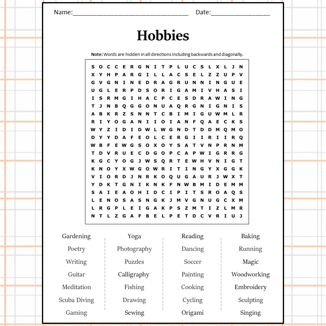 A fun and engaging word search puzzle that delves into the captivating world of Hobbies.