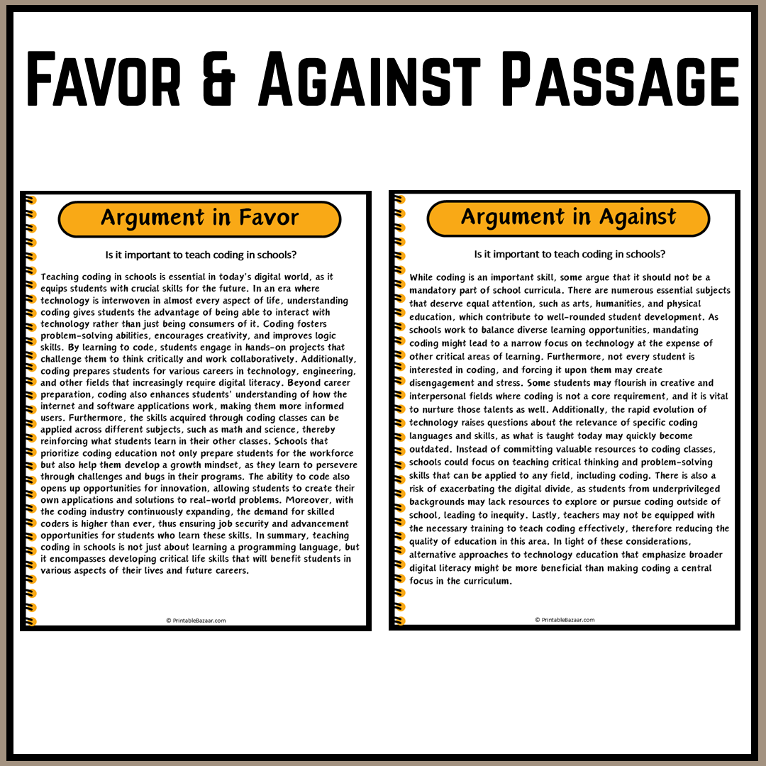 - Informative Passage: Insightful content discussing the pros and cons of coding education.