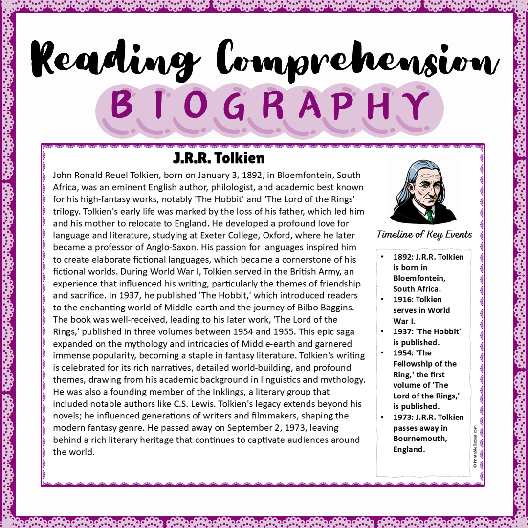 J.R.R. Tolkien | Biography Reading Comprehension and Questions Worksheet