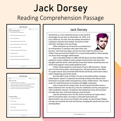 Jack Dorsey | Reading Comprehension Passage Printable Activity
