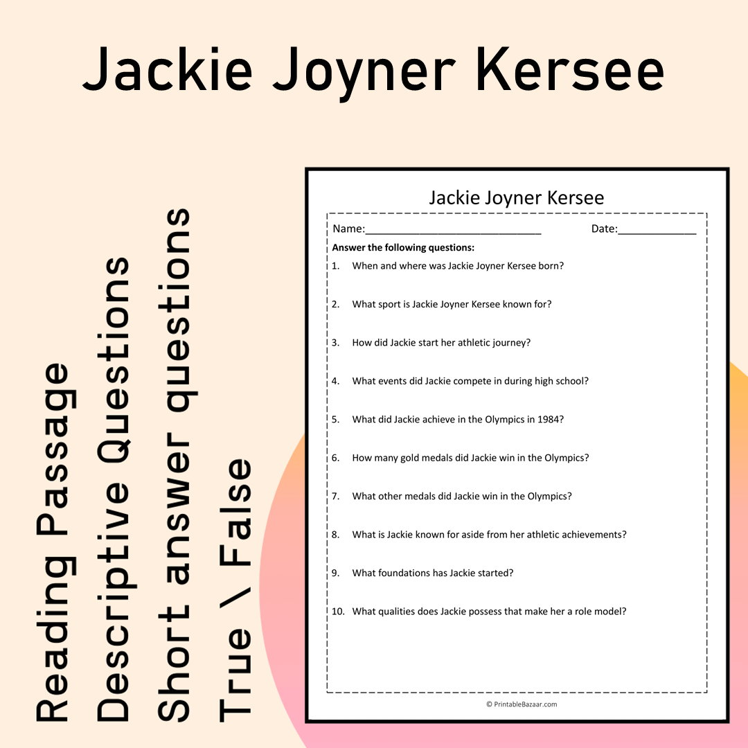 Are you ready to dive into the inspiring world of one of the greatest female athletes in history? Our digital worksheet on Jackie Joyner Kersee is designed to educate and engage learners about this phenomenal track and field star! Born on March 3, 1962, in East St. Louis, Illinois, Jackie has shown the world just how far determination and hard work can take you. From her early days of running and jumping to winning multiple Olympic medals, Jackie’s journey is a remarkable testament to chasing dreams and making a difference! 🌟