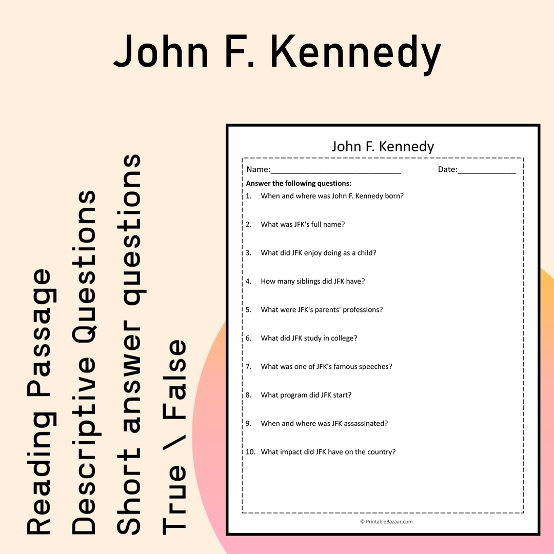 John F. Kennedy | Reading Comprehension Passage Printable Activity