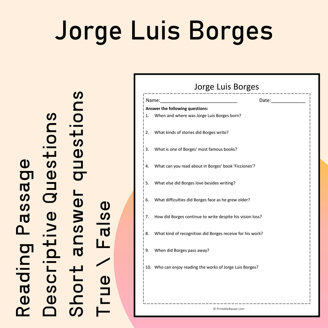 Jorge Luis Borges | Reading Comprehension Passage Printable Activity