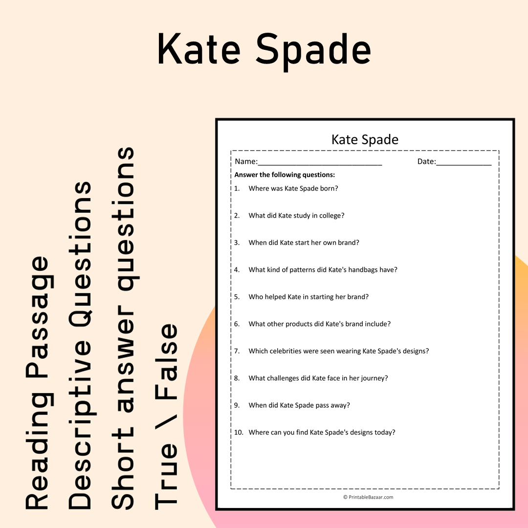 Kate Spade | Reading Comprehension Passage Printable Activity