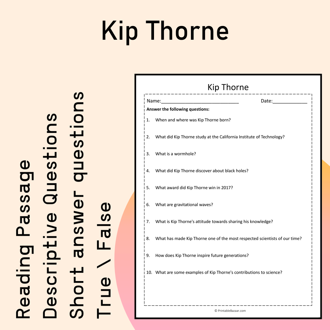 Kip Thorne | Reading Comprehension Passage Printable Activity