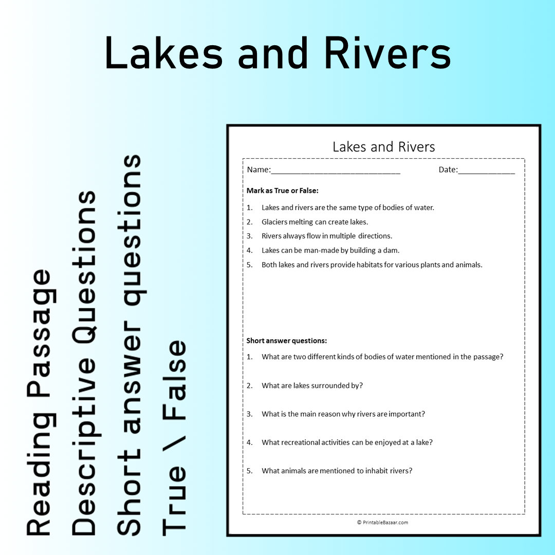 - Engaging Reading Passage: Learn all about lakes and rivers, their characteristics, and their significance in our ecosystem.