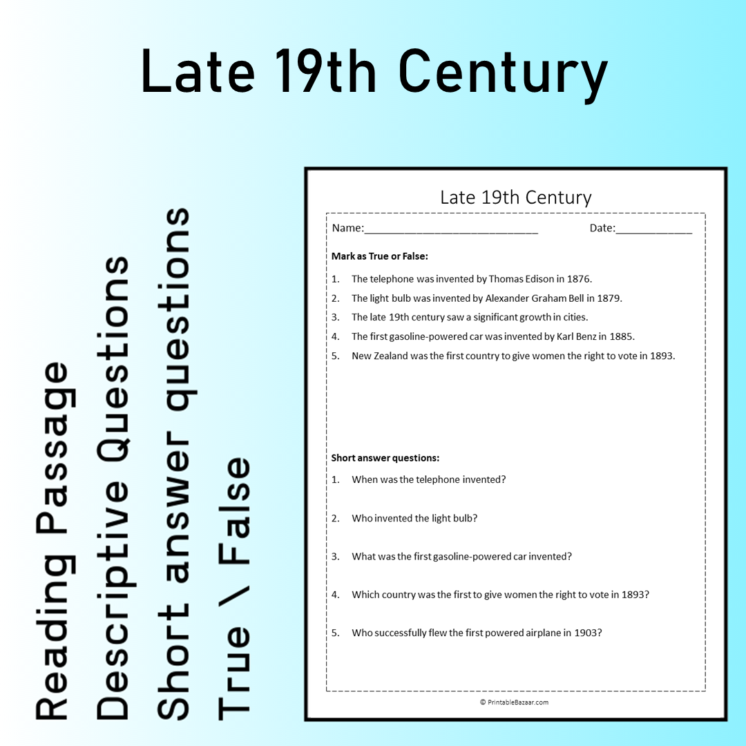 Late 19th Century | Reading Comprehension Passage Printable Worksheet