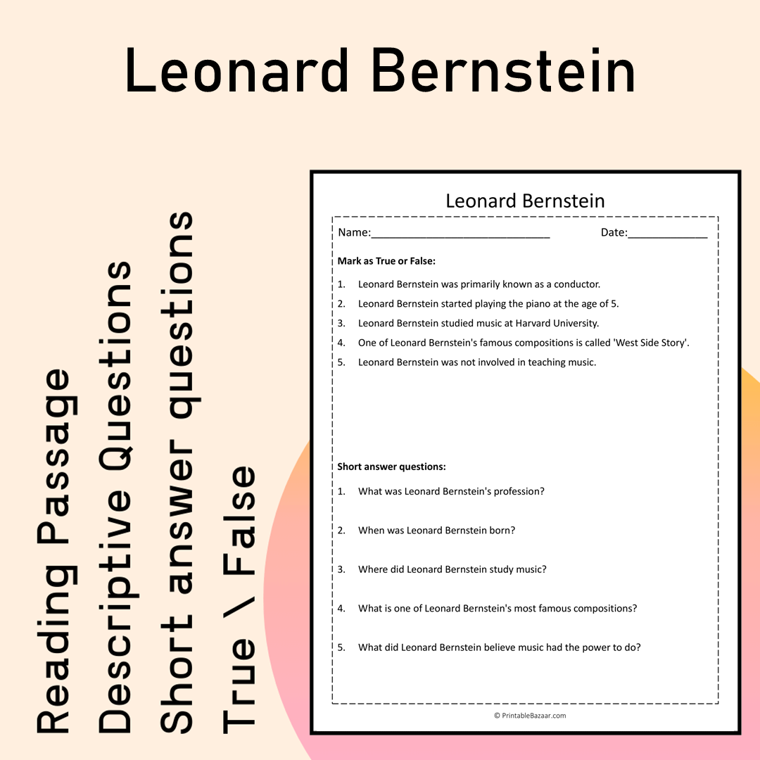 Leonard Bernstein | Reading Comprehension Passage Printable Activity