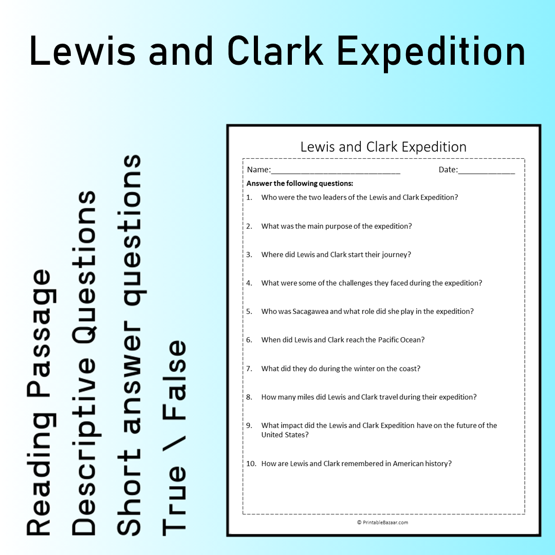 Lewis and Clark Expedition | Reading Comprehension Passage Printable Worksheet