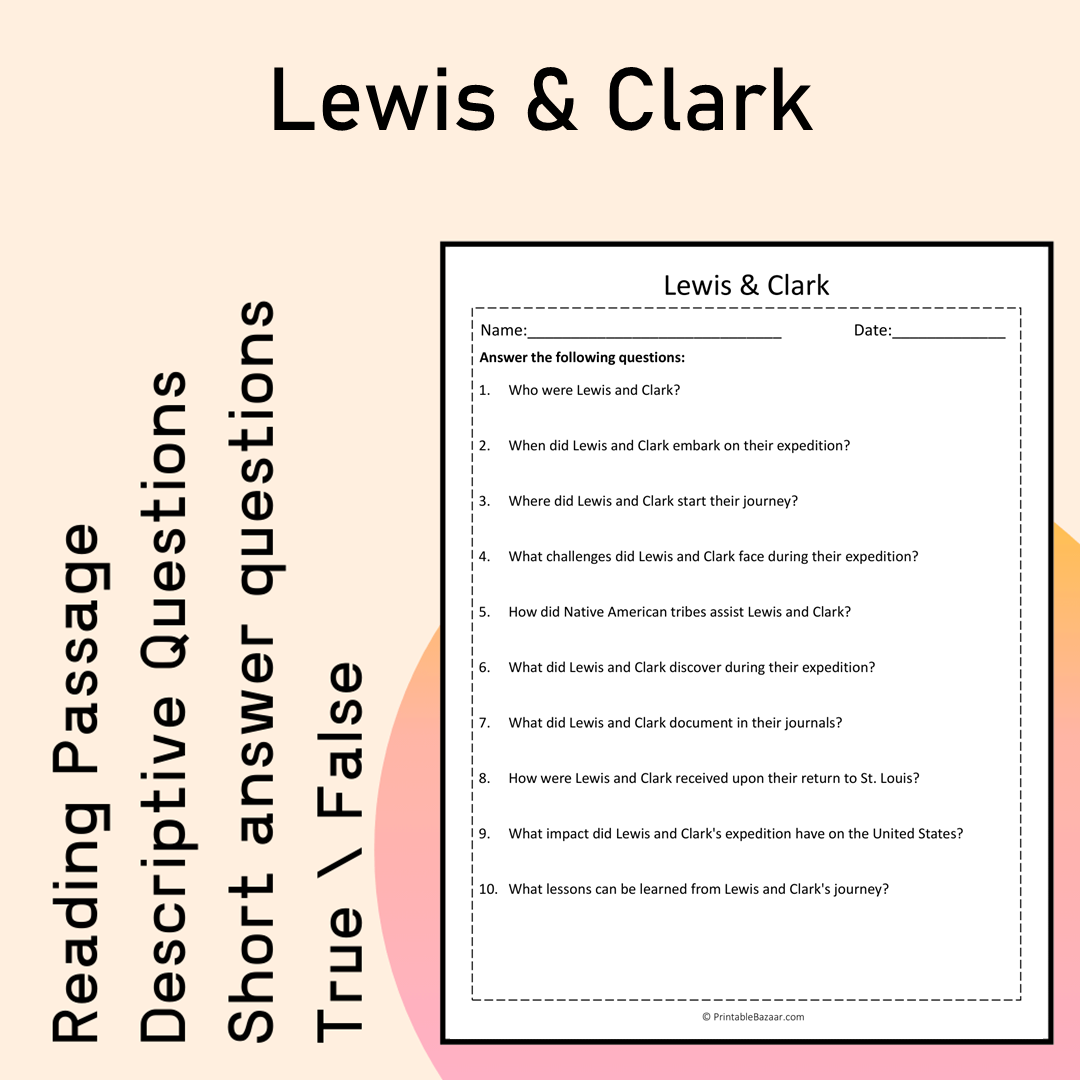 Lewis & Clark | Reading Comprehension Passage Printable Activity