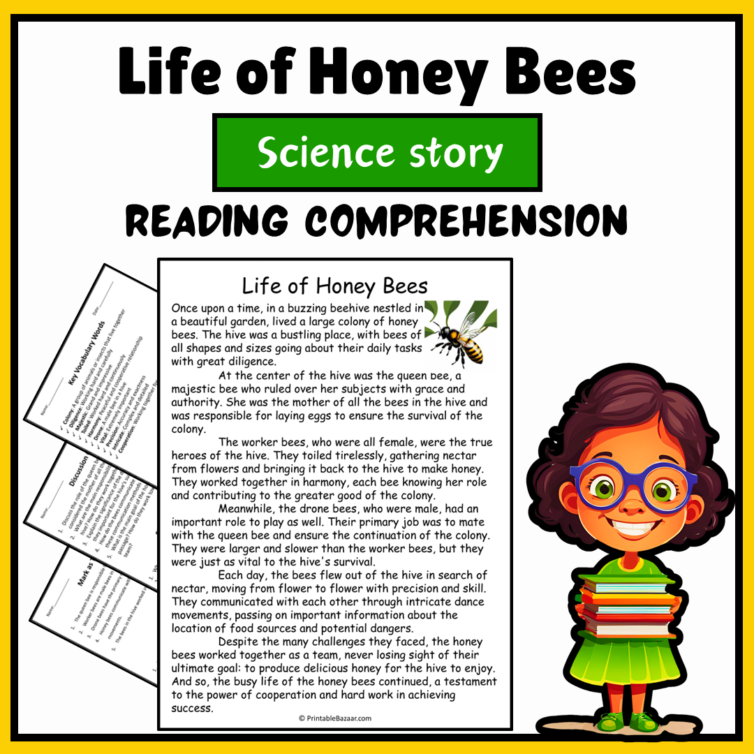 Life of Honey Bees | Science Story Reading Comprehension Activity
