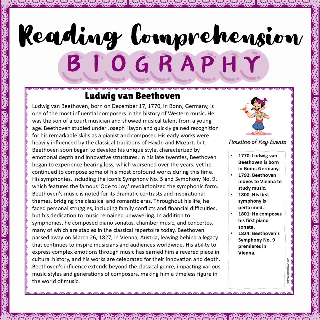 Ludwig van Beethoven | Biography Reading Comprehension and Questions Worksheet