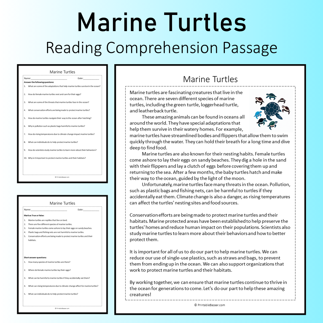 Marine Turtles | Reading Comprehension Passage Printable Worksheet
