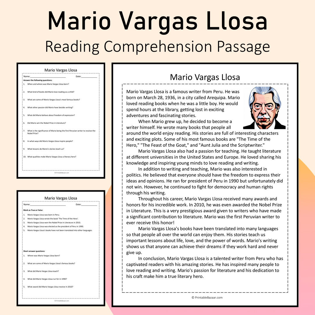 Mario Vargas Llosa | Reading Comprehension Passage Printable Activity