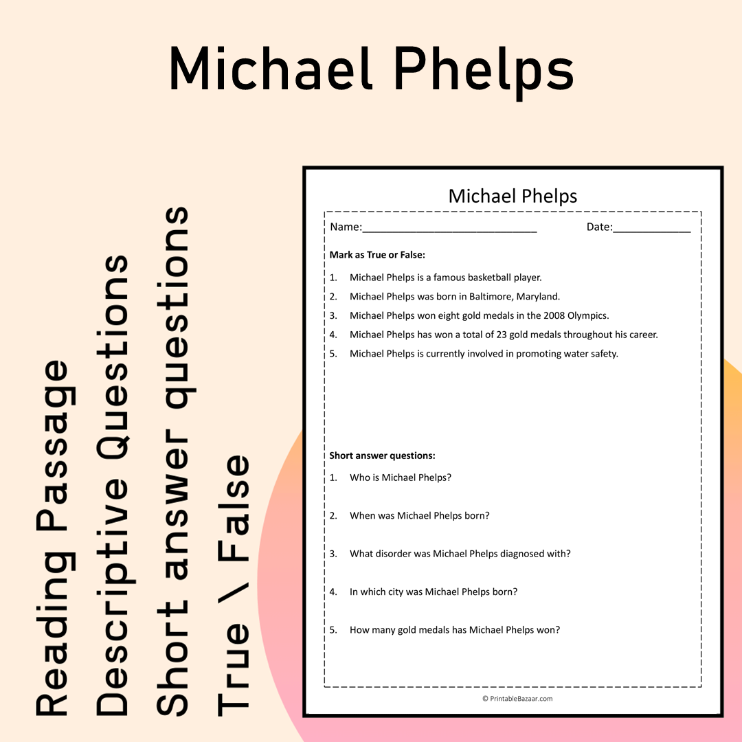 Introducing our engaging digital worksheet on the legendary swimmer, Michael Phelps! This worksheet is designed to captivate young learners and inspire them through the incredible journey of a boy who turned challenges into triumphs. With a world-renowned career marked by resilience and determination, Michael Phelps serves as a fantastic role model for students everywhere. Whether they’re budding swimmers or simply curious about the sports world, this resource provides valuable insights into his life and achievements. 📚