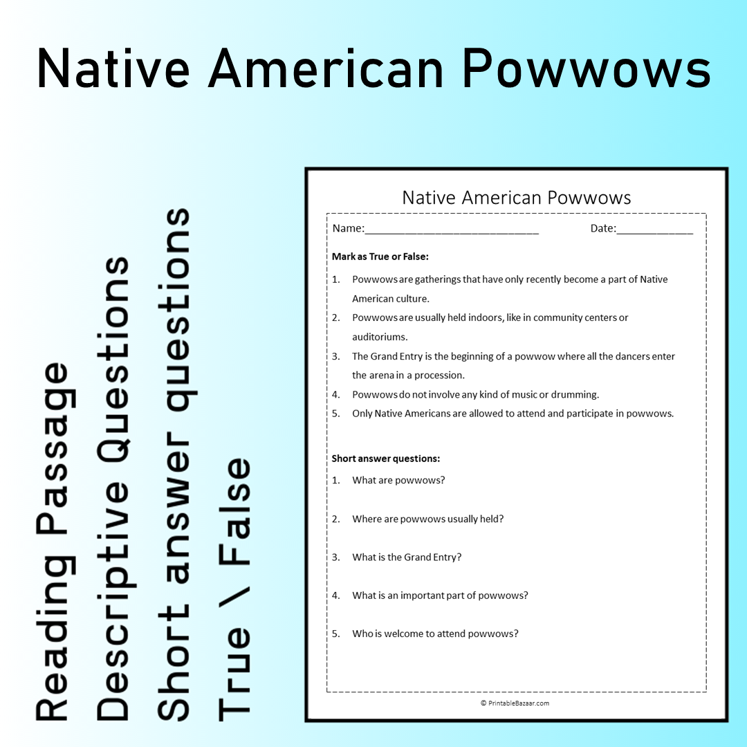 Native American Powwows | Reading Comprehension Passage Printable Worksheet