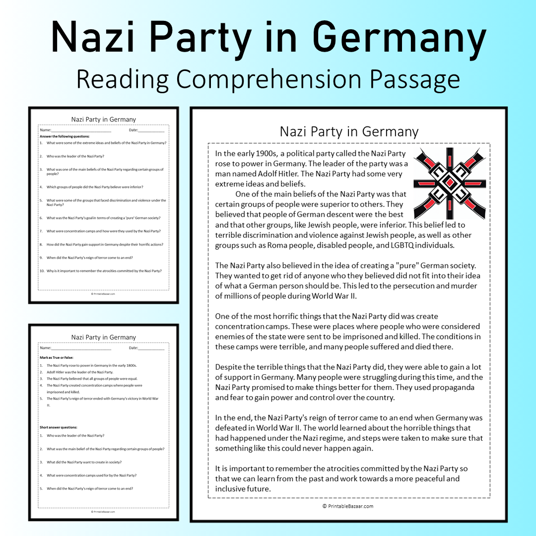Nazi Party in Germany | Reading Comprehension Passage Printable Worksheet