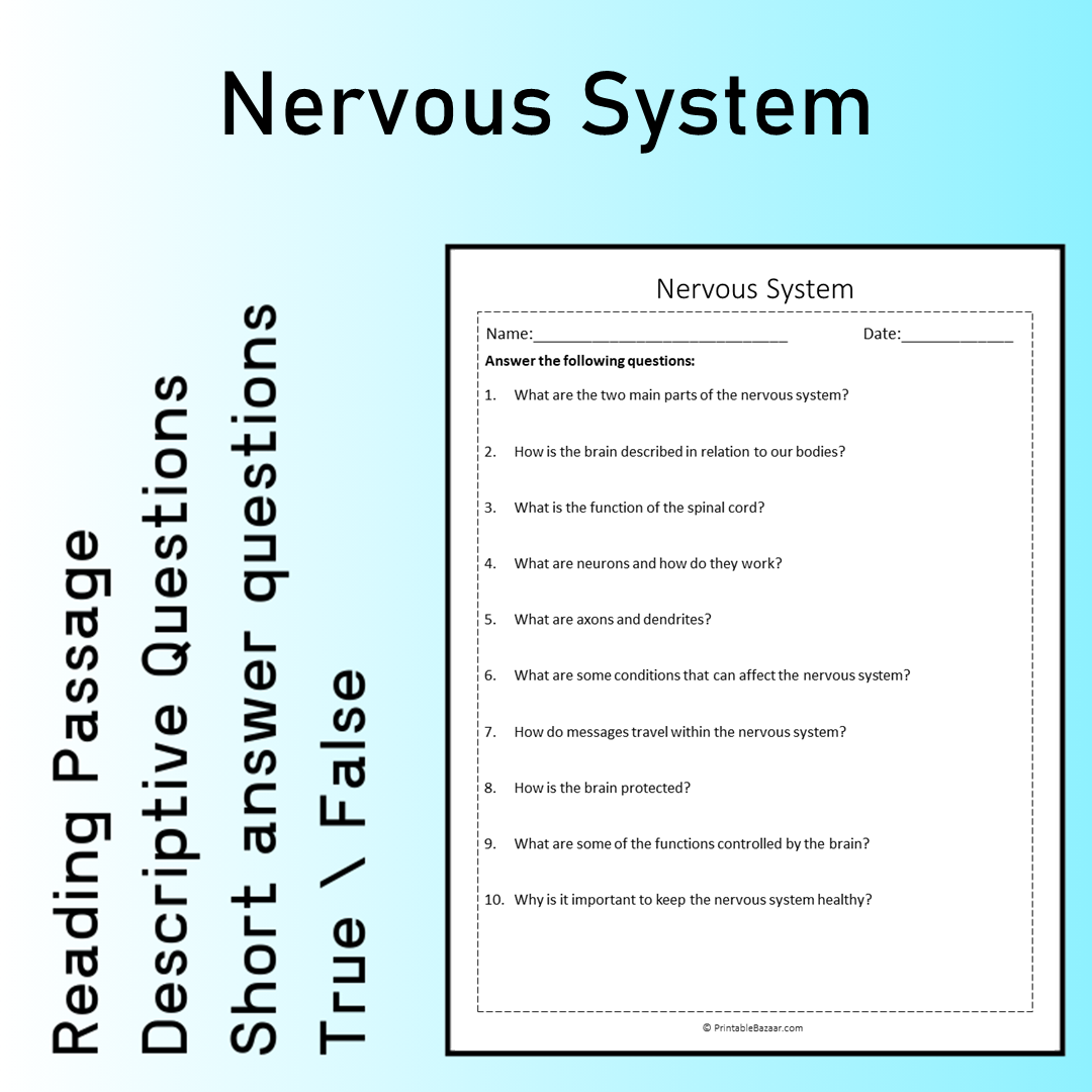 Nervous System | Reading Comprehension Passage Printable Worksheet