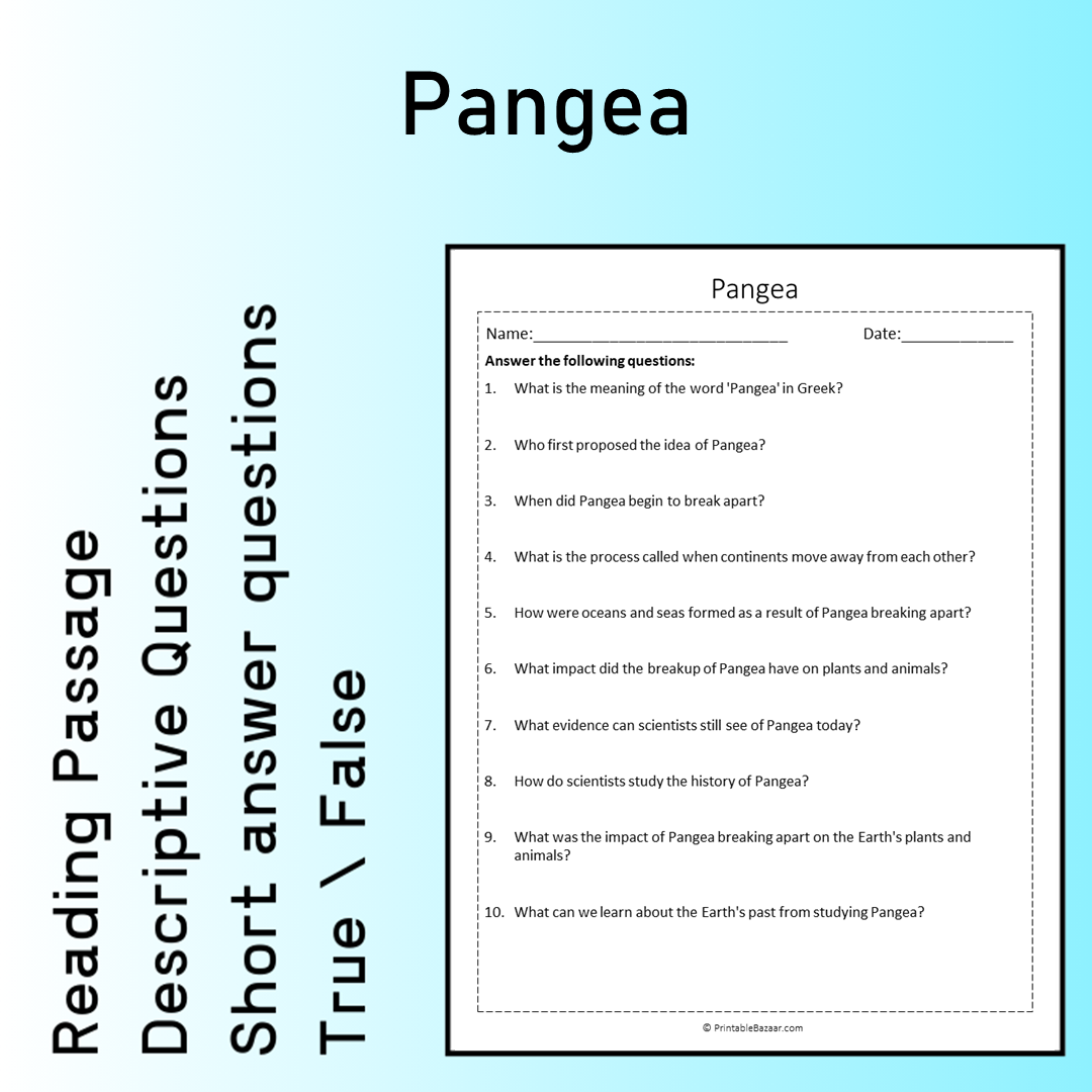 - Reading Passage: An engaging and informative text about Pangea 📖