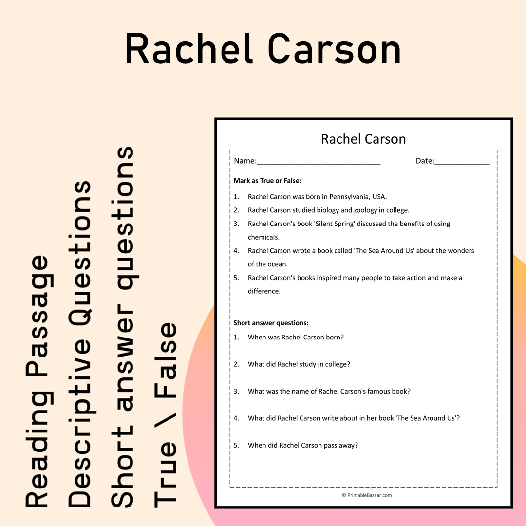 - Reading Passage: Engaging text about Rachel Carson's life and legacy.
