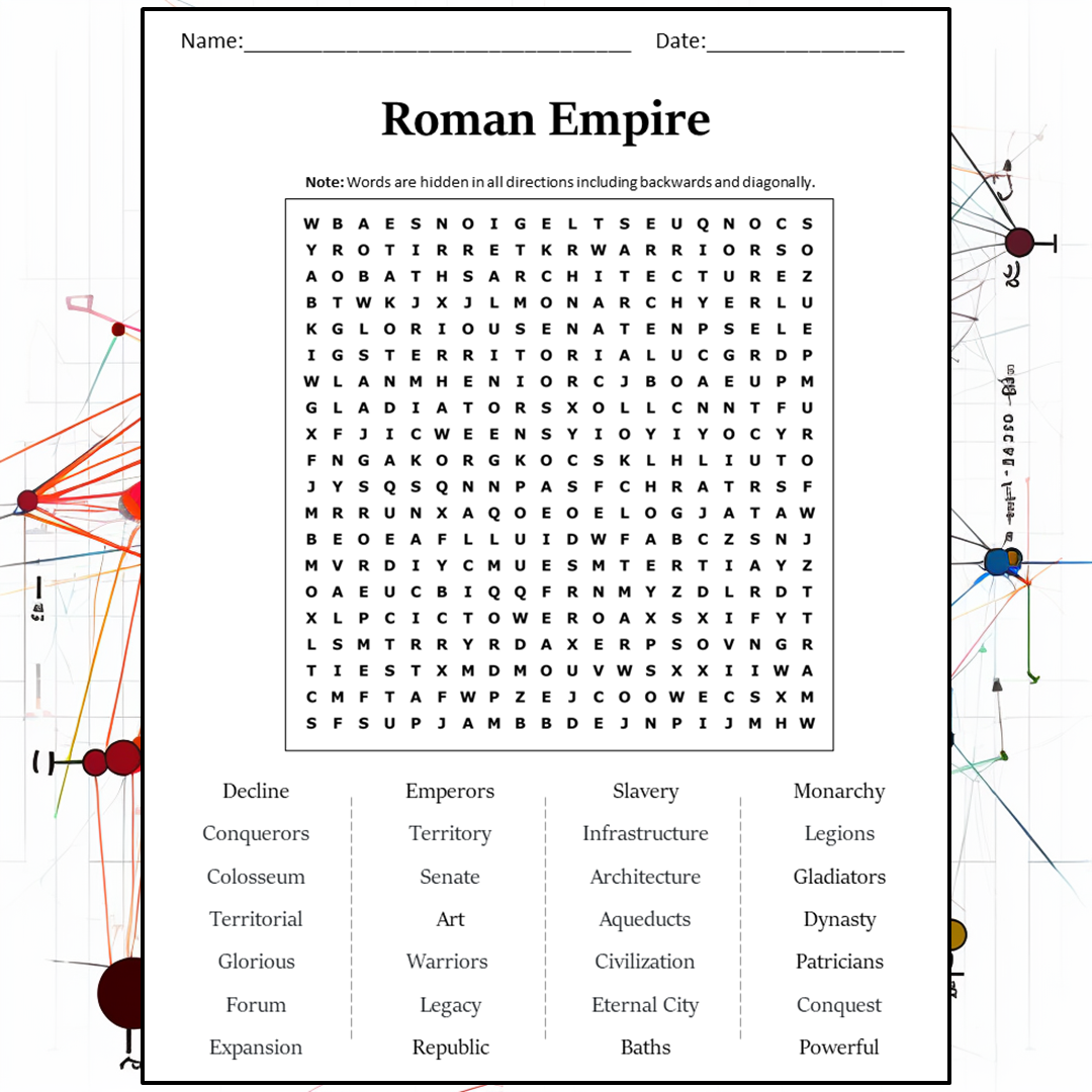 A fun and engaging word search puzzle that delves into the captivating world of Roman Empire.