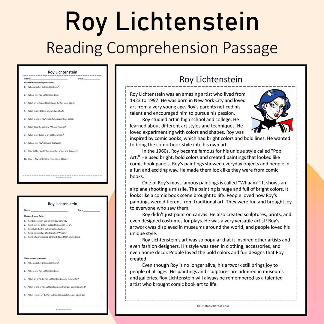 Roy Lichtenstein | Reading Comprehension Passage Printable Activity