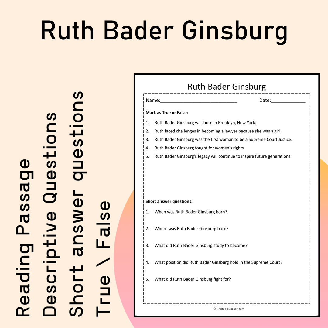 - 📖 Reading Passage: An inspiring overview of Ruth Bader Ginsburg's life and achievements.