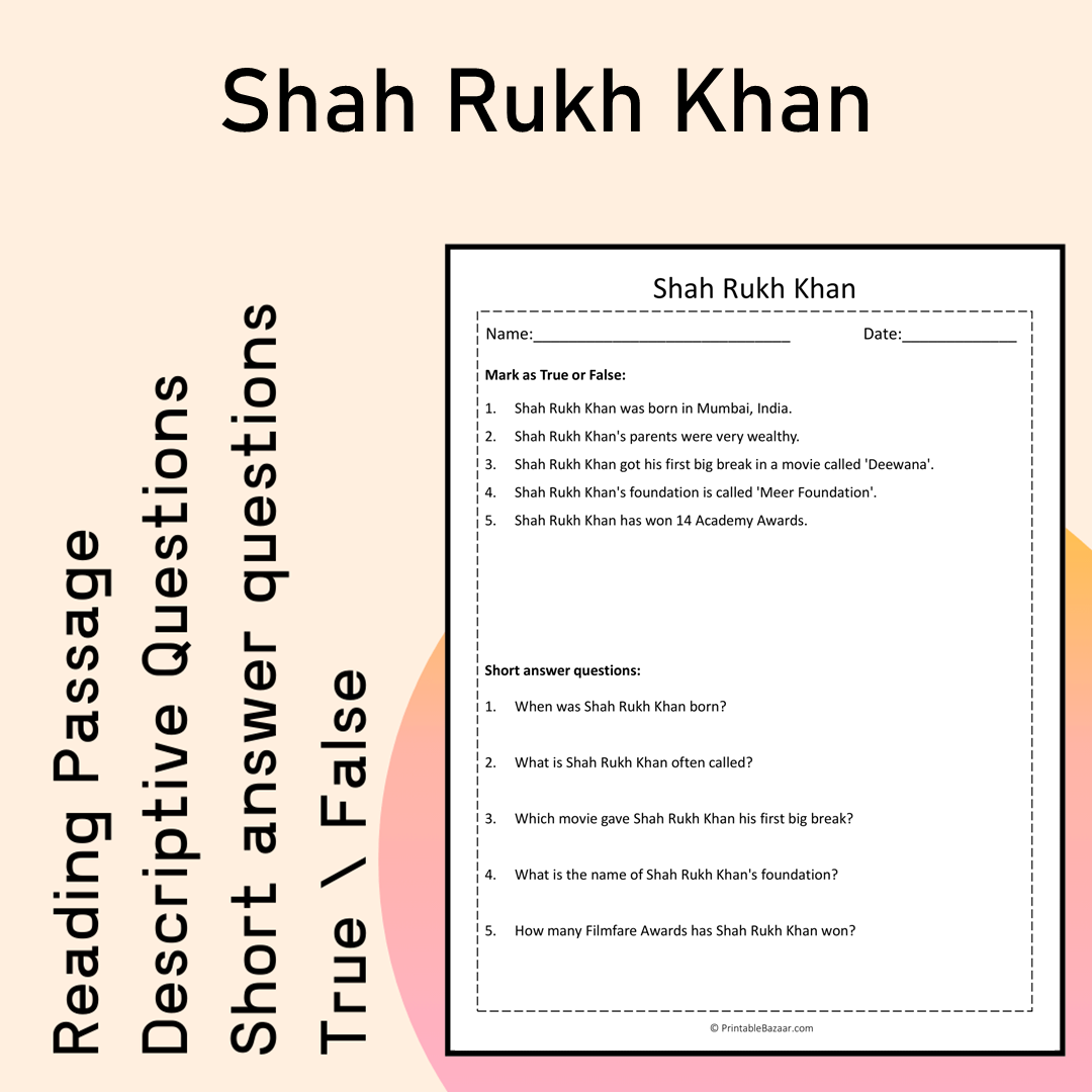 Shah Rukh Khan | Reading Comprehension Passage Printable Activity