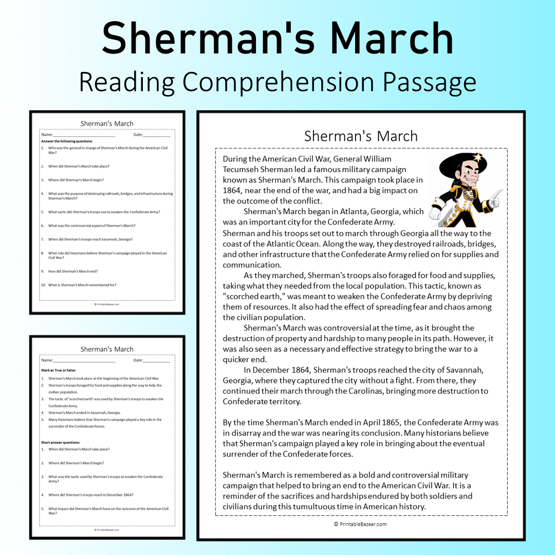 Sherman's March | Reading Comprehension Passage Printable Worksheet